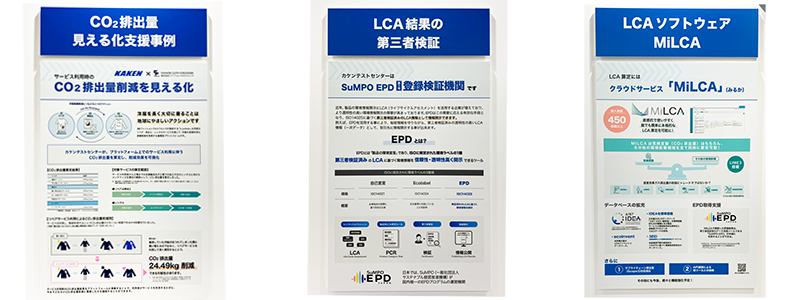 今回の出展では、製品のライフサイクル全体における環境影響を評価・可視化する手法である「LCA(ライフサイクルアセスメント)」に関連するサービスをご紹介いたしました。